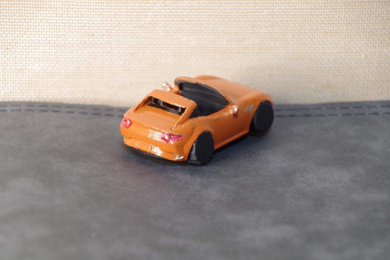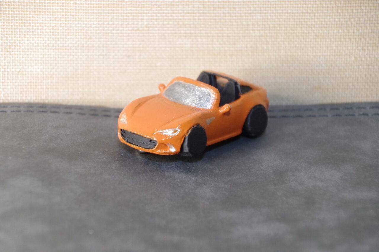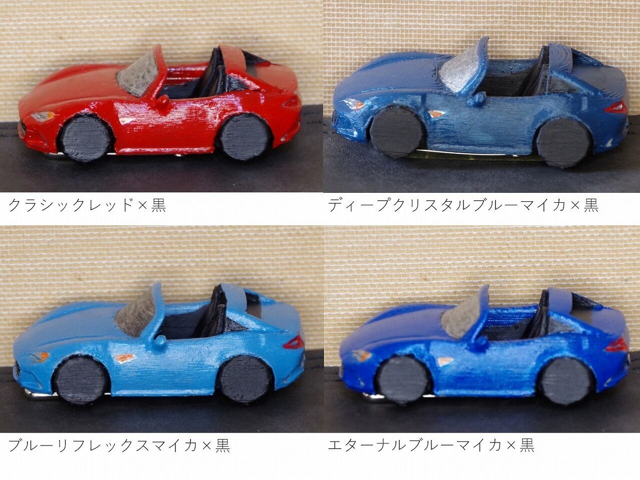 NDロードスターRFをデフォルメした模型をカラフルに塗装したピンバッジです。
